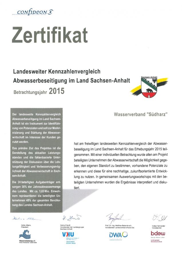 Der Wasserverband „Südharz“ hat am freiwilligen landesweiten Kennzahlenvergleich der Abwasserbeseitigung in Sachsen-Anhalt für das Erhebungsjahr 2015 teilgenommen.
